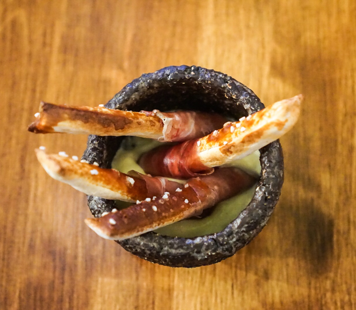 The lamb comes from a local purveyor in Westchester and is like a meatier prosciutto. It’s wrapped around housemade pretzels that are the perfect blend of crispy and airy. Scoop some creamy dijon mustard on it and you’ve got the perfect snack.