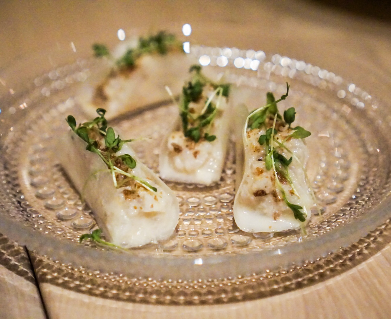 Adding to the unusualness is Agern’s almost hidden location within Grand Central Station. Basically you want to use the 42nd & Vanderbilt entrance, take the walkway to Rite Aid, make a right, pass a bodega and if you hit the Shuttle to Times Square you’ve gone too far. But fear not, once inside you’ll quickly forget the mass of commuters you just battled through to get here. Agern is calm, with a modern woodsy simplicity that’s sort of exactly what you expect a high end Scandinavian restaurant to look like. The space is surprisingly large for a tasting menu restaurant which allows for well spaced tables so you can easily try to figure out with your dining companions what the last dish tasted like.