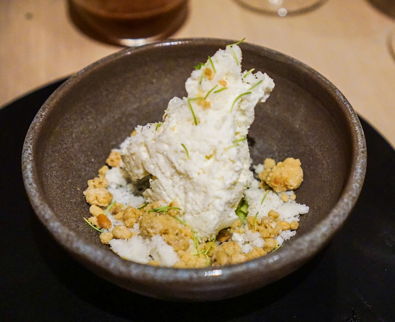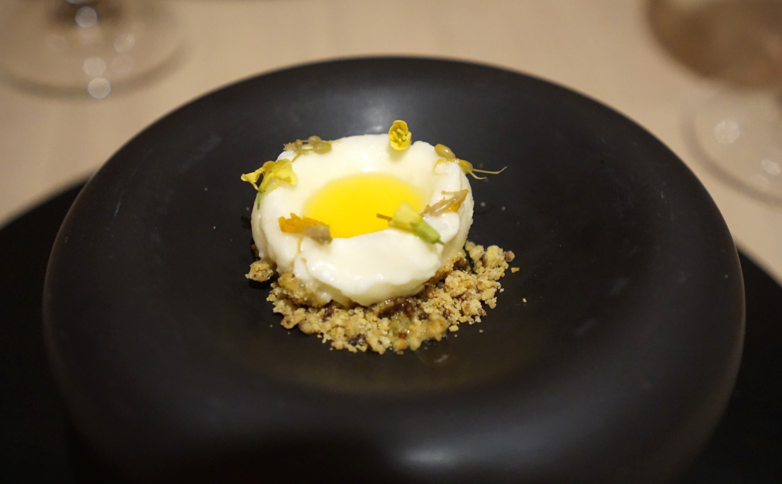 Rapeseed This palate cleanser was served with honey and mustard flowers. To be honest I had a little trouble getting past the bitterness of the dessert courses.
