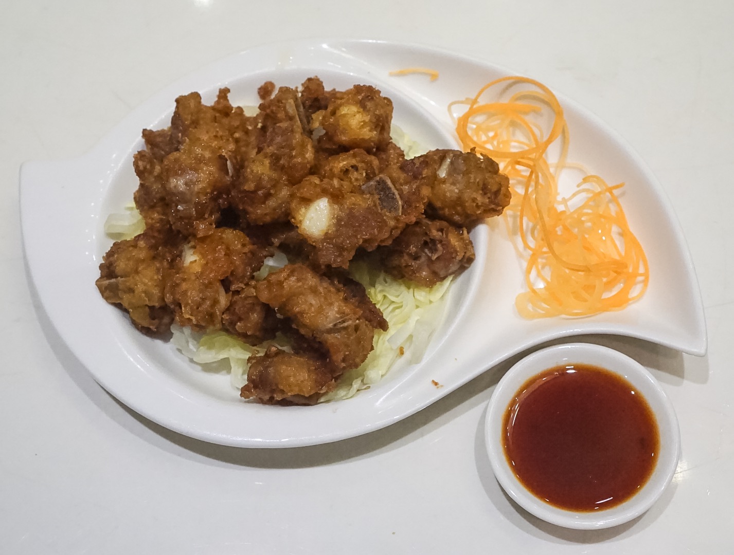 Crispy Fried Diced Pork Rib These meaty little bites of fried rib are a fun way to start your meal. It doesn’t hurt that they sweet and sour sauce they come with is the bomb.