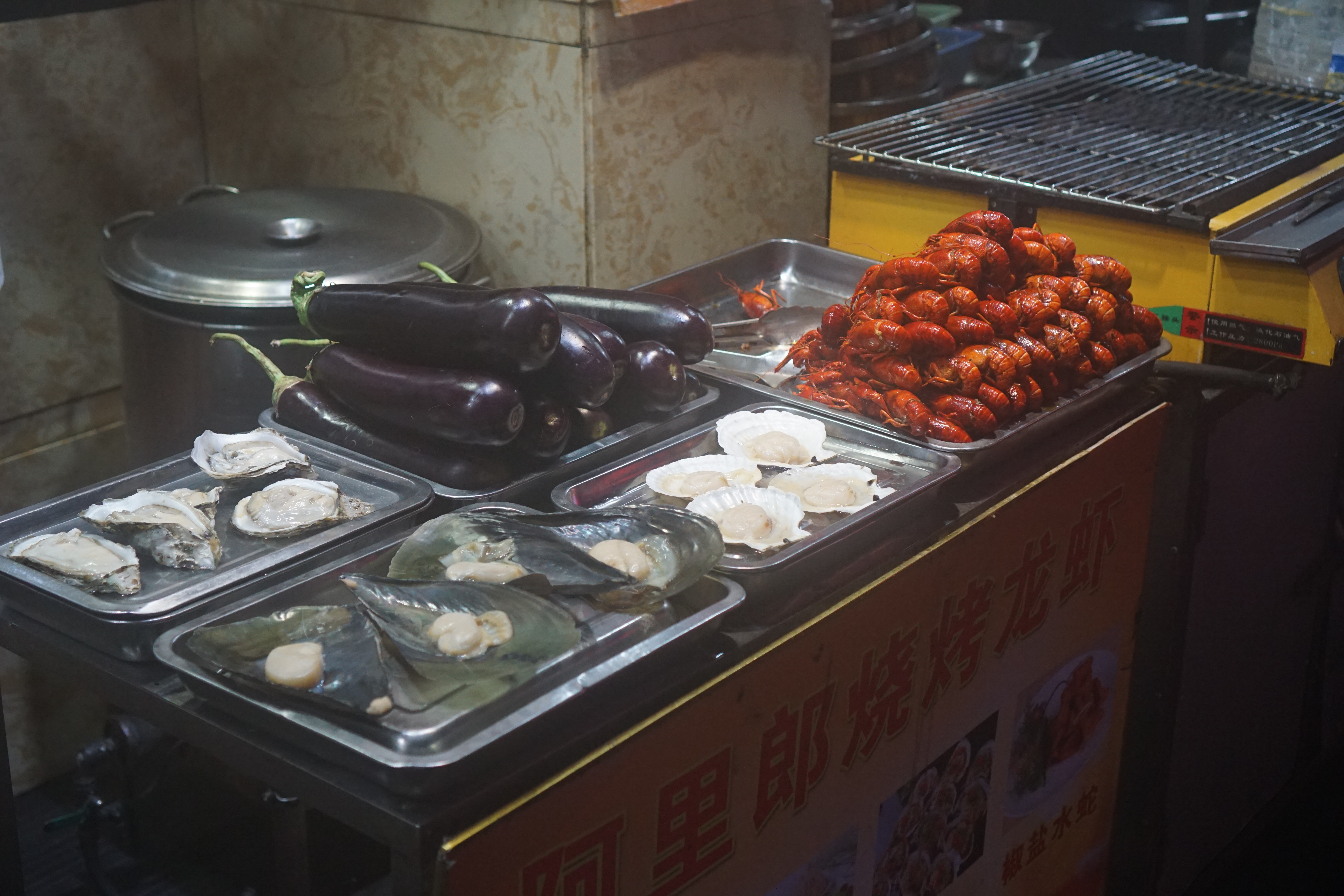Typical Street Food Stall with Fresh Seafood