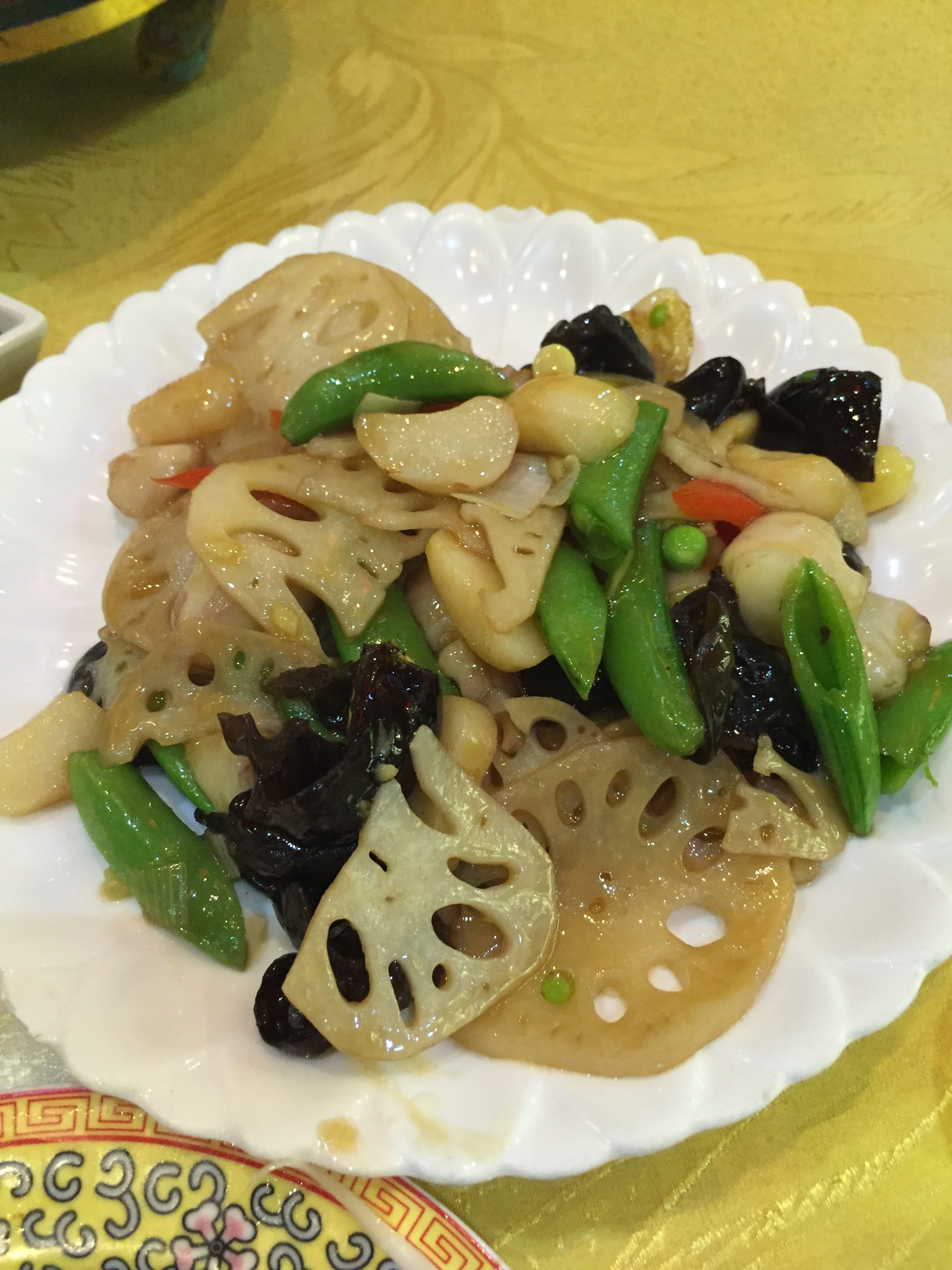 Lotus Root, Watercress, Ear Mushrooms and Snap Peas – Nice Veggie Option ![]()