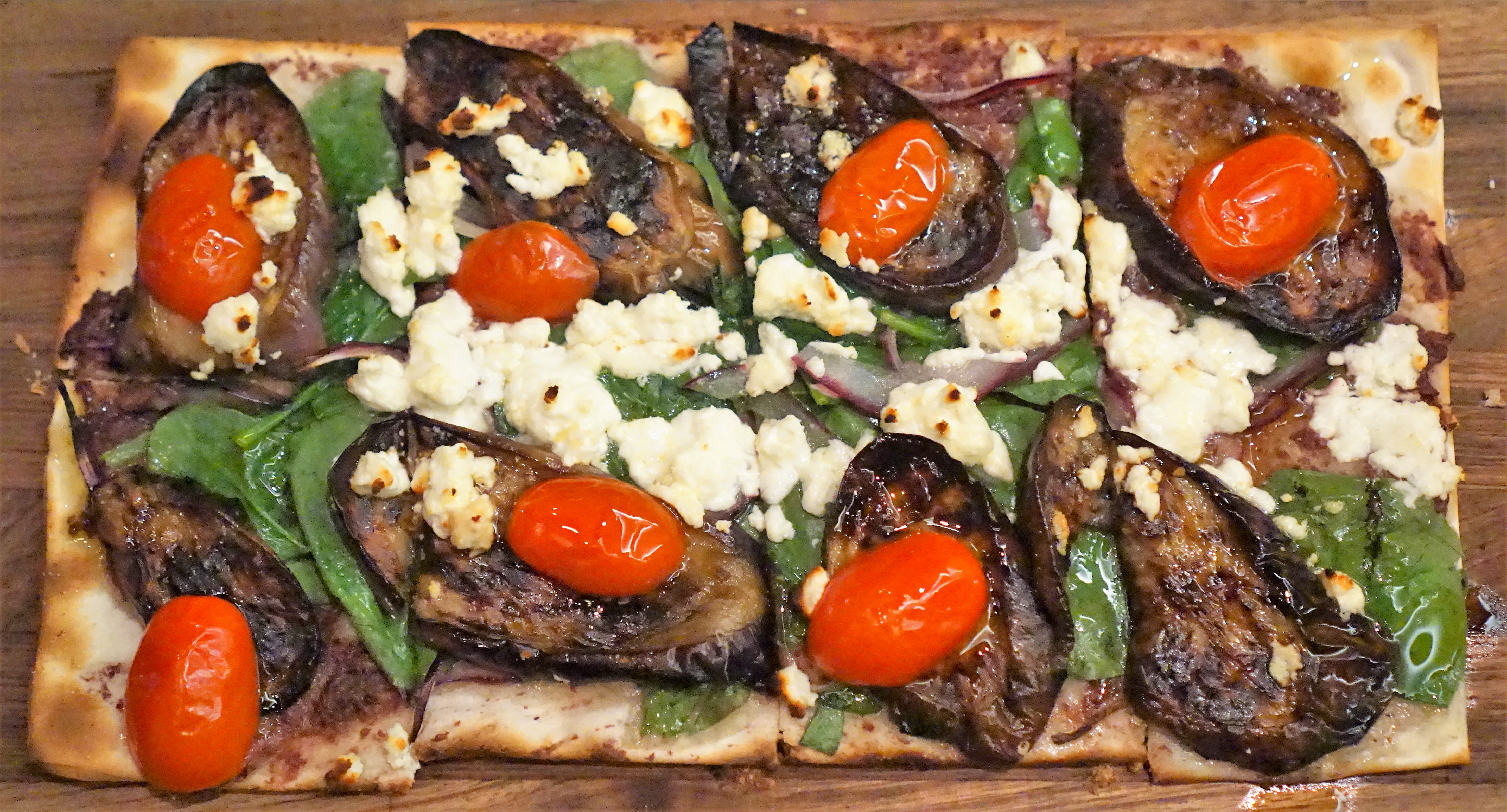 A much better way to grab your veggies before the pig arrived was this eggplant, tomato and olive covered flatbread. It had a nice crispiness and smattering of baked cheese.