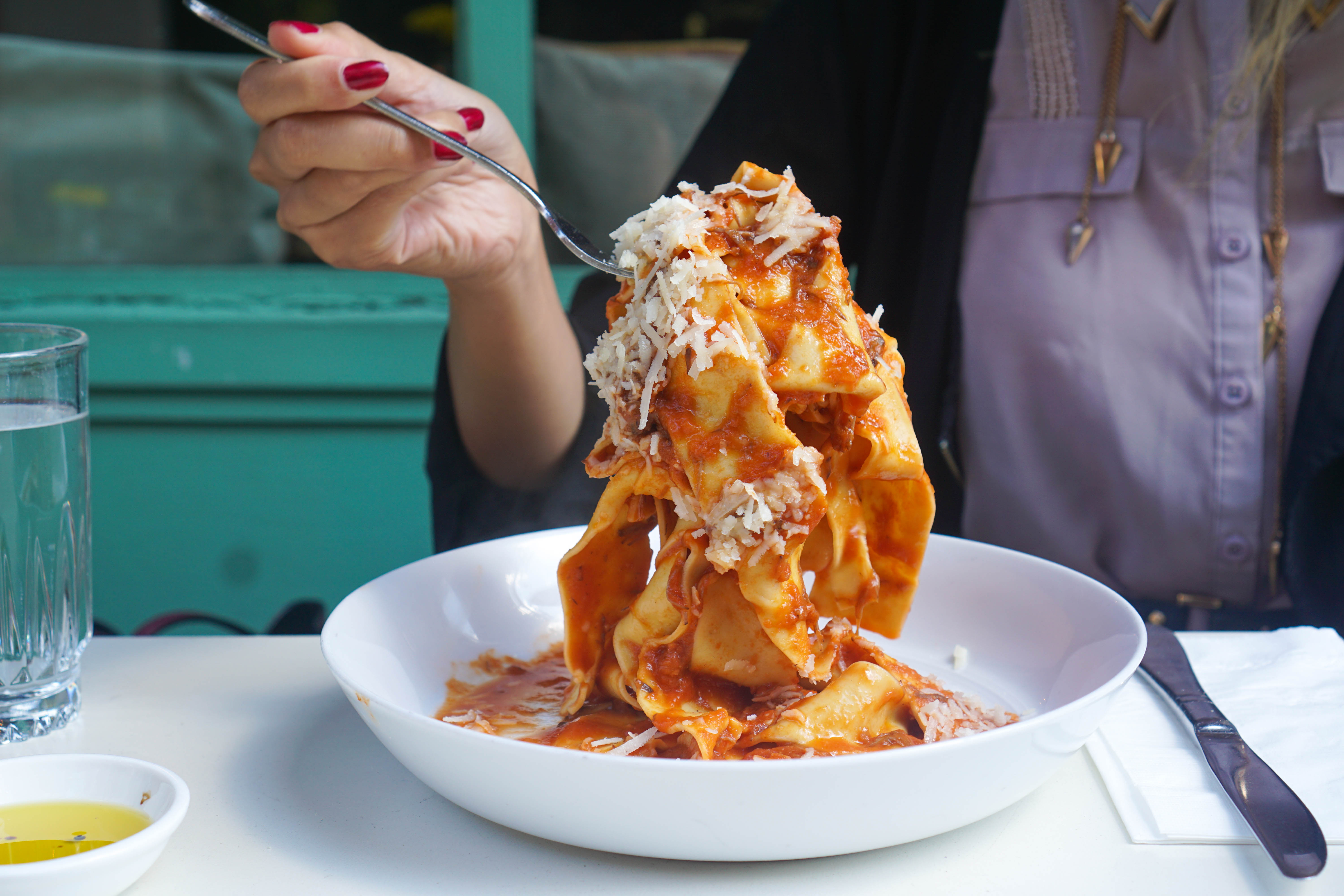 Pappardelle al Sugo di Carne Sometimes the simplest pastas are the best. The perfectly cooked noodles are covered in a beef tomato sauce and parmigiano cheese. Order it and leave happy.