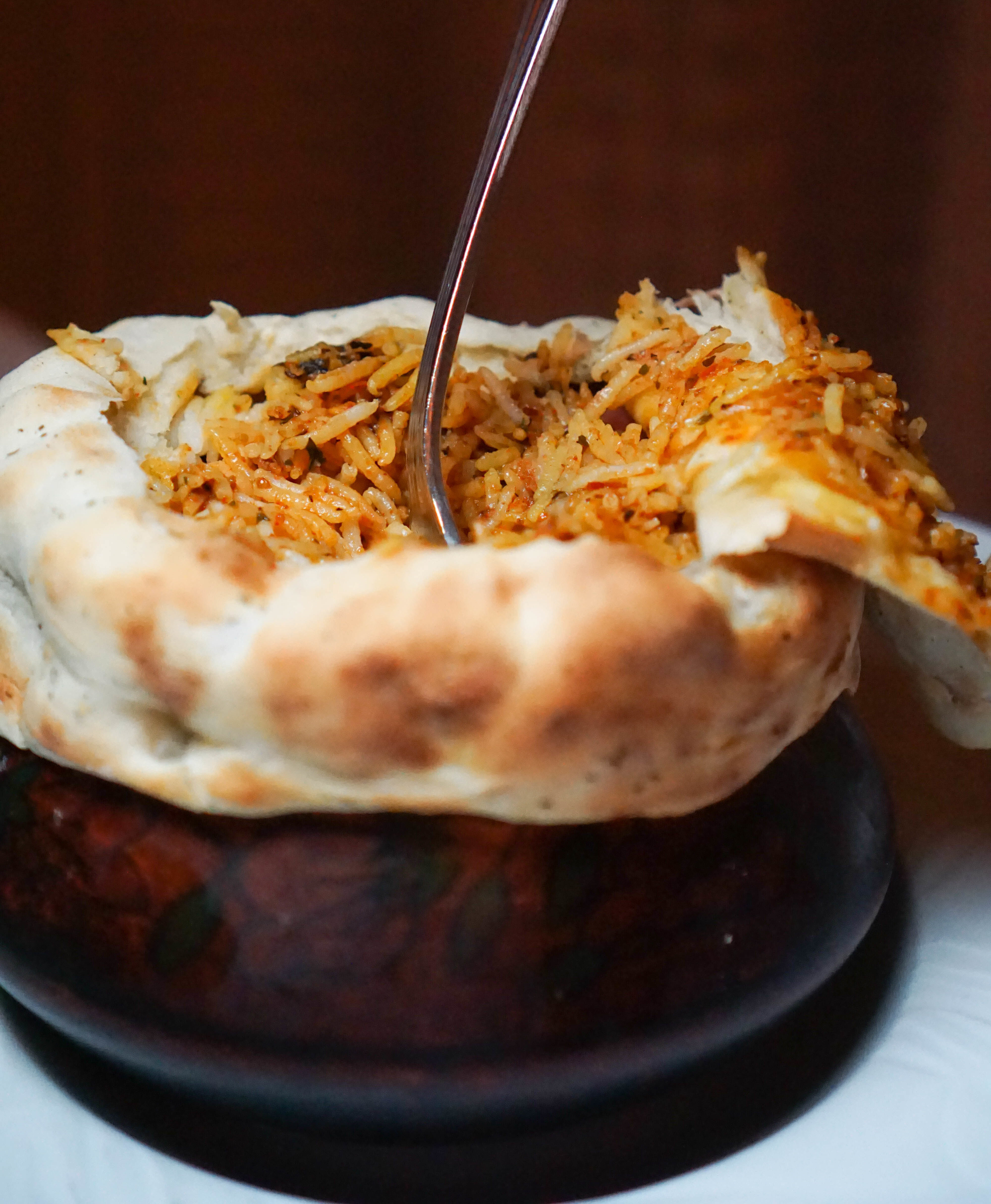 Goat Dum Biryani (Mughal style rice sealed with dough baked in a clay pot) Prior to coming here I never really saw the excitement over biryani. It just seemed like a big pot of rice. But at Tulsi you find out what all the fuss is about. It’s cooked with dough in a clay pot opened tableside. Inside this one there’s goat, ginger, garlic, cardamom, mace & saffron. Pretty sure that’s not on your local Indian joint’s menu. Try it here and know you’ve had the best.