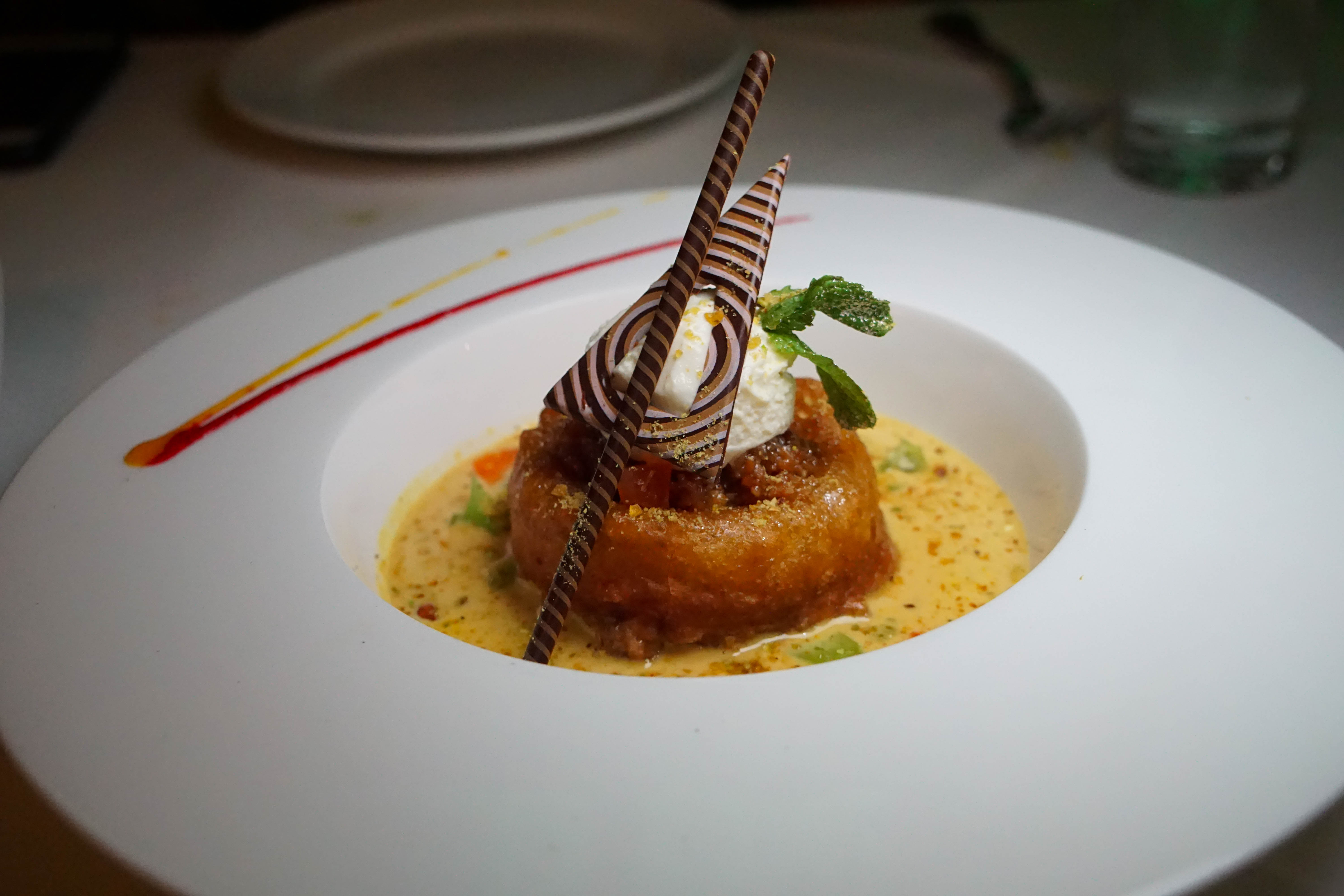 Misti Doi (Baked yogurt, rose water, cardamom, Jangri Caviar) Sort of like an Indian cheesecake, but made with yogurt. So it’s healthy right?