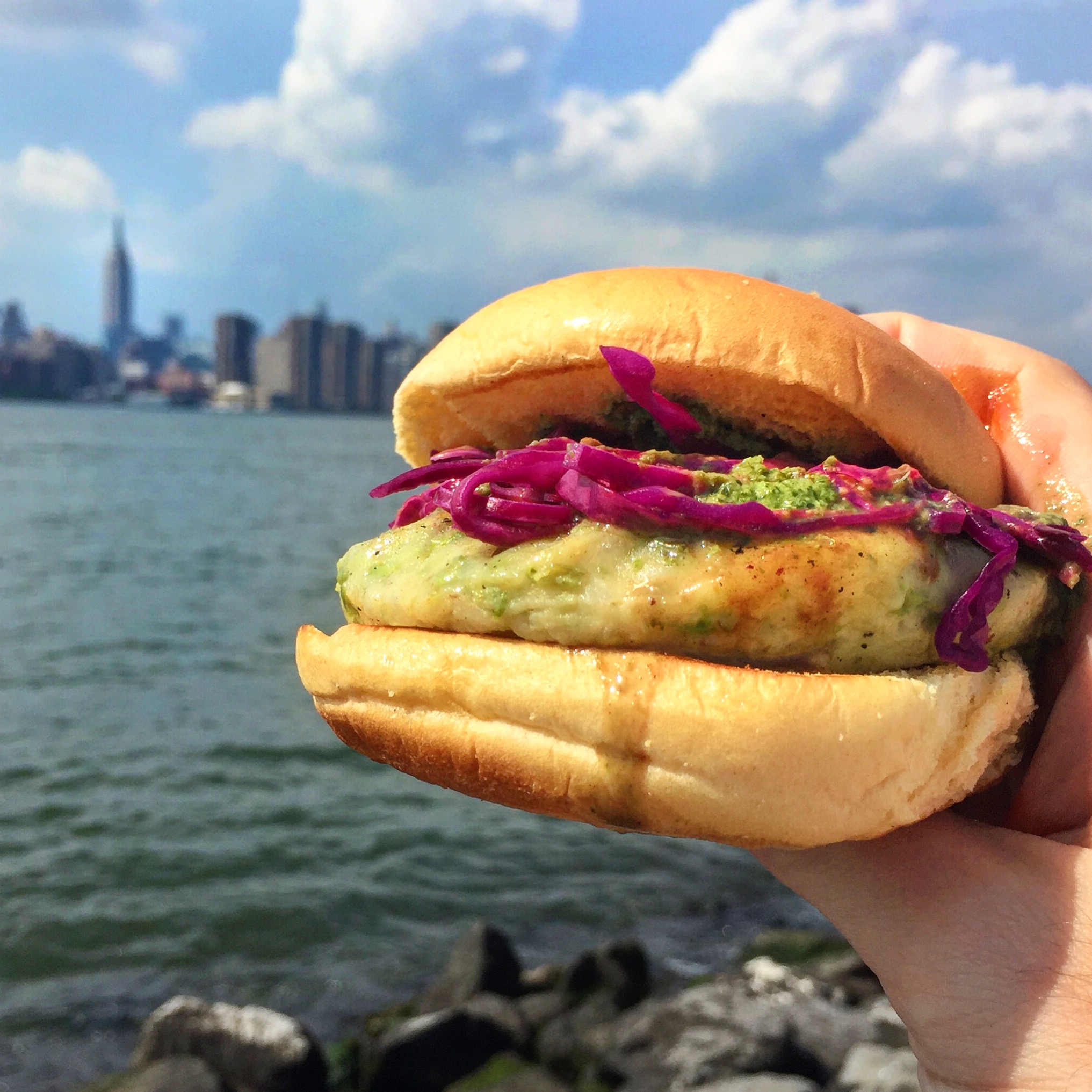 This is about as close as it gets to a burger off the grill in your backyard. Maybe because Smorgasburg is kind of Williamsburg’s backyard. It’s a Flesicher’s beef patty covered with American Cheese and Mustard on a Martin’s Potato Roll. So classic and so delicious.