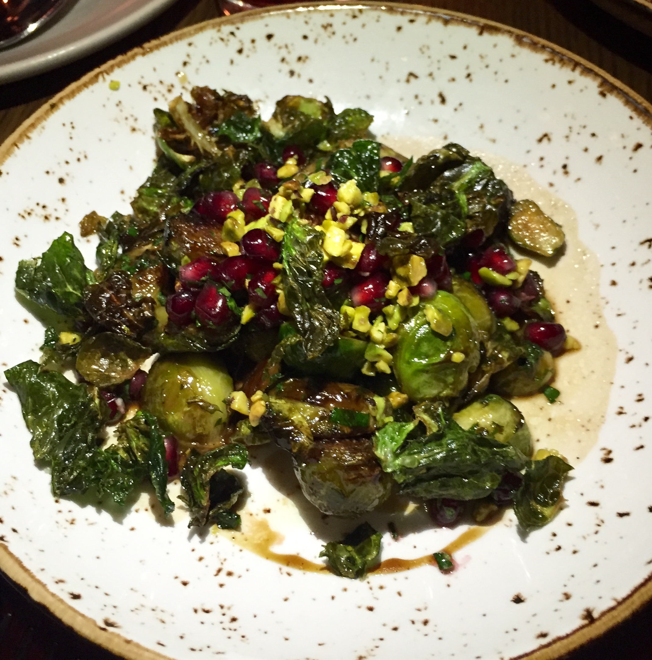 One of the hot items of the last couple years, Gato finds a new way to serve it up Brussels with a sweet-sour pomegrante-pistachio combination. A smart way to take your vegetables.