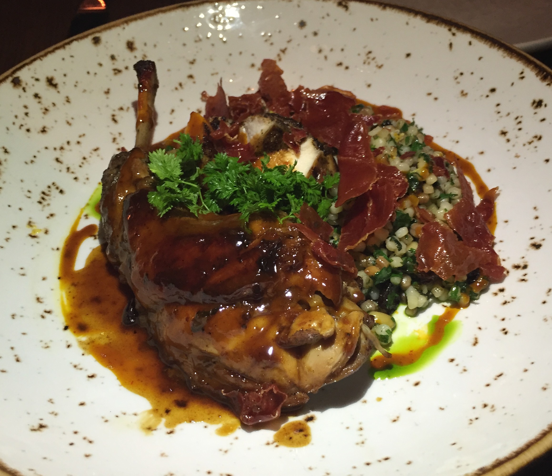 Between the pine nuts, currants, carrot hot sauce and crispy ham this rabbit is up to more craziness than Bugs. Eat and you’ll understand what Elmer Fudd was working so hard for.