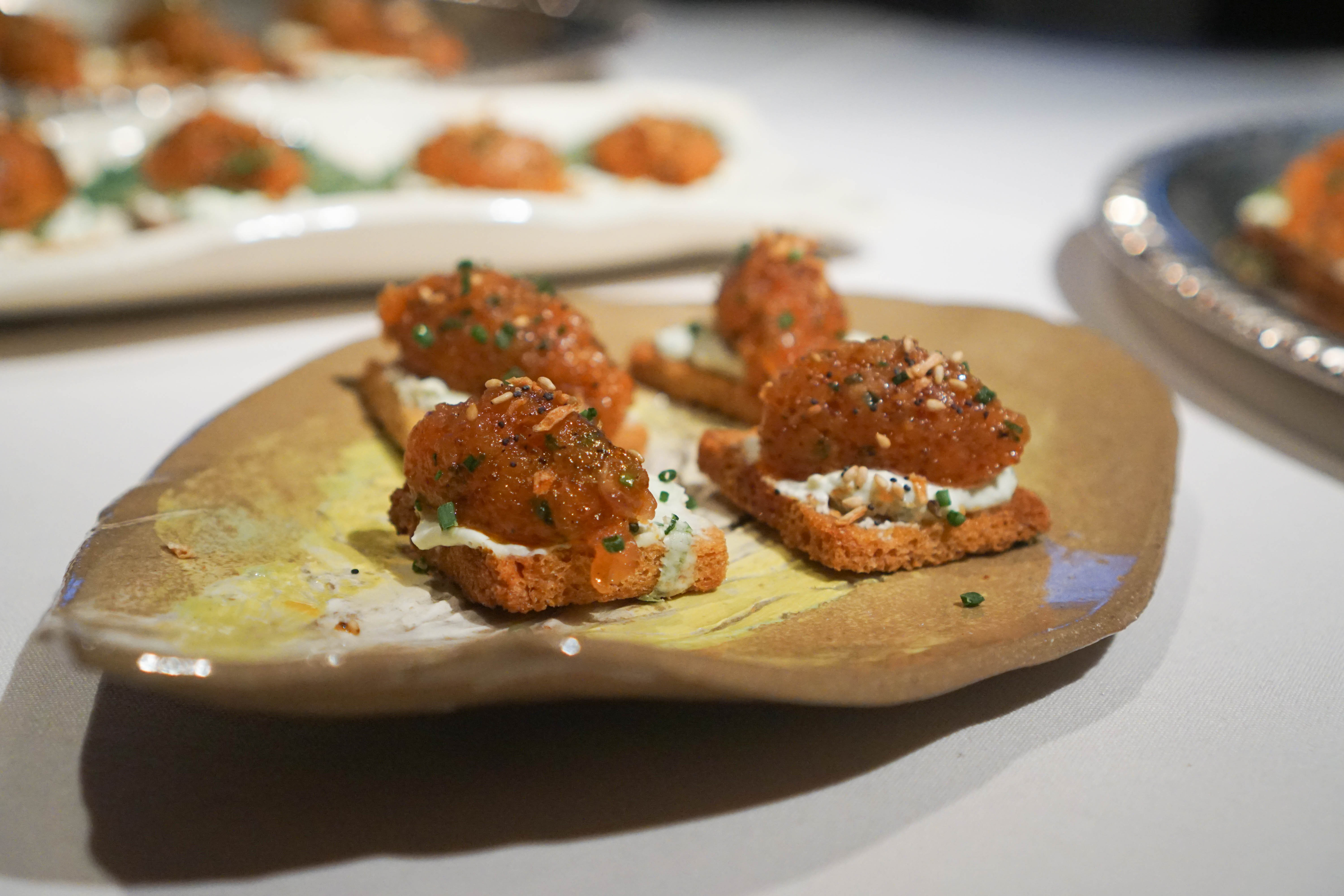 This marked the 13th year of SHARE’s Tasting Benefit and the event was held at Pier 60 in Chelsea Piers. The gorgeous glass enclosed space was the perfect place to watch the sun set while snacking on bites from many of New York’s top female chefs. Angie Mar of Beatrice Inn served as Executive Chef alongside a full 25 other stars including Amanda Cohen (Dirty Candy), Alex Guarnaschelli (Butter) and Anita Lo (Annisa). It was truly incredible seeing so many of New York’s finest culinary wizards in one place each serving up a signature dish to support this worthy cause. Items were only a couple bites a piece making it possible to try all the amazing eats on offer. A variety of liquor, wine and craft beer vendors were also on hand to help wash it all down.