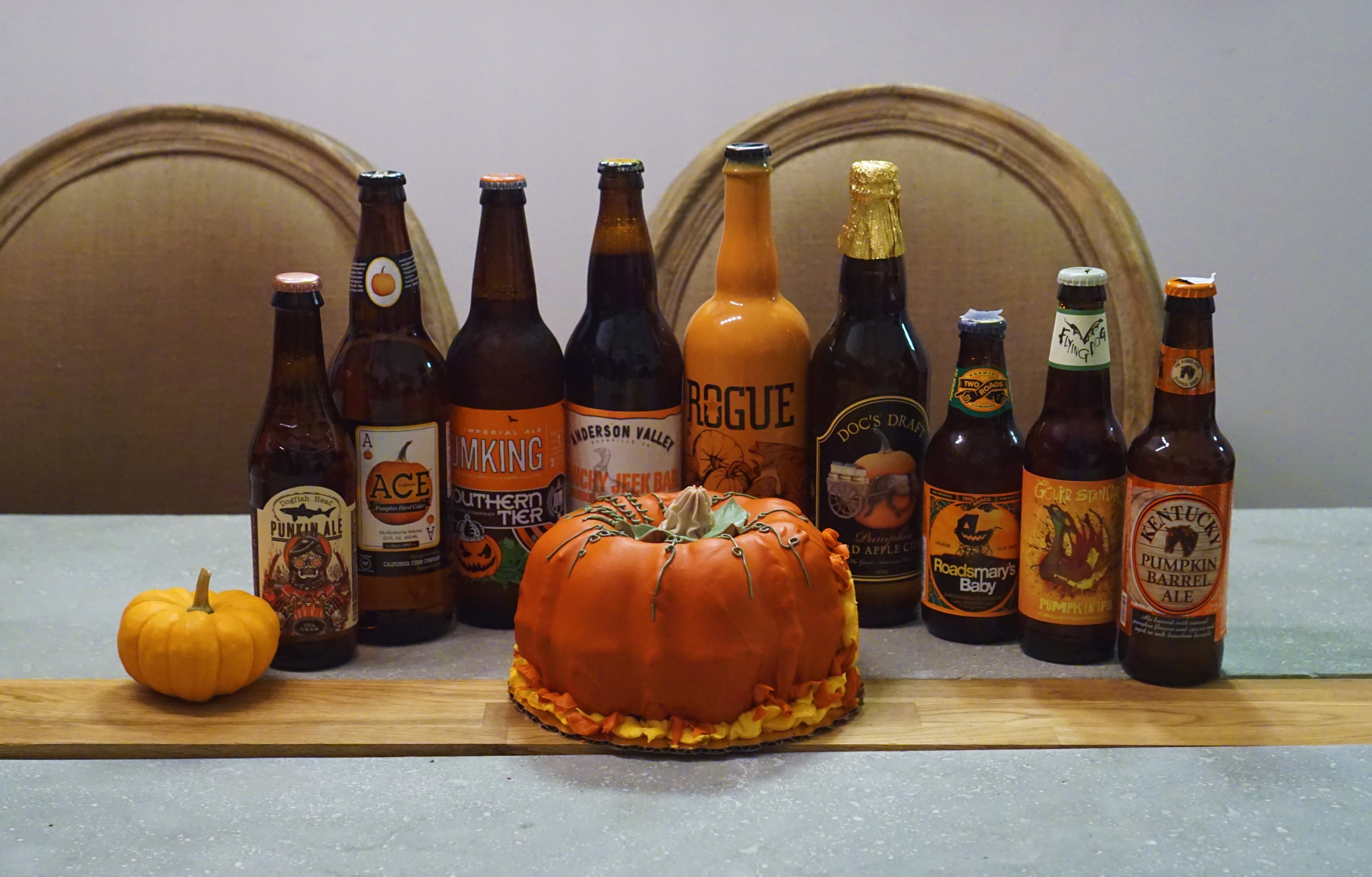 This year we decide to put craft pumpkin beers to the test. Nine were chosen from Whole Foods Williamsburg (who also put together the incredible Pumpkin Cake in the center). Three categories emerged: traditional beer, barrel aged beer and cider. Each was rated on pumpkin and spice flavor and given an overall score. Here are the results.