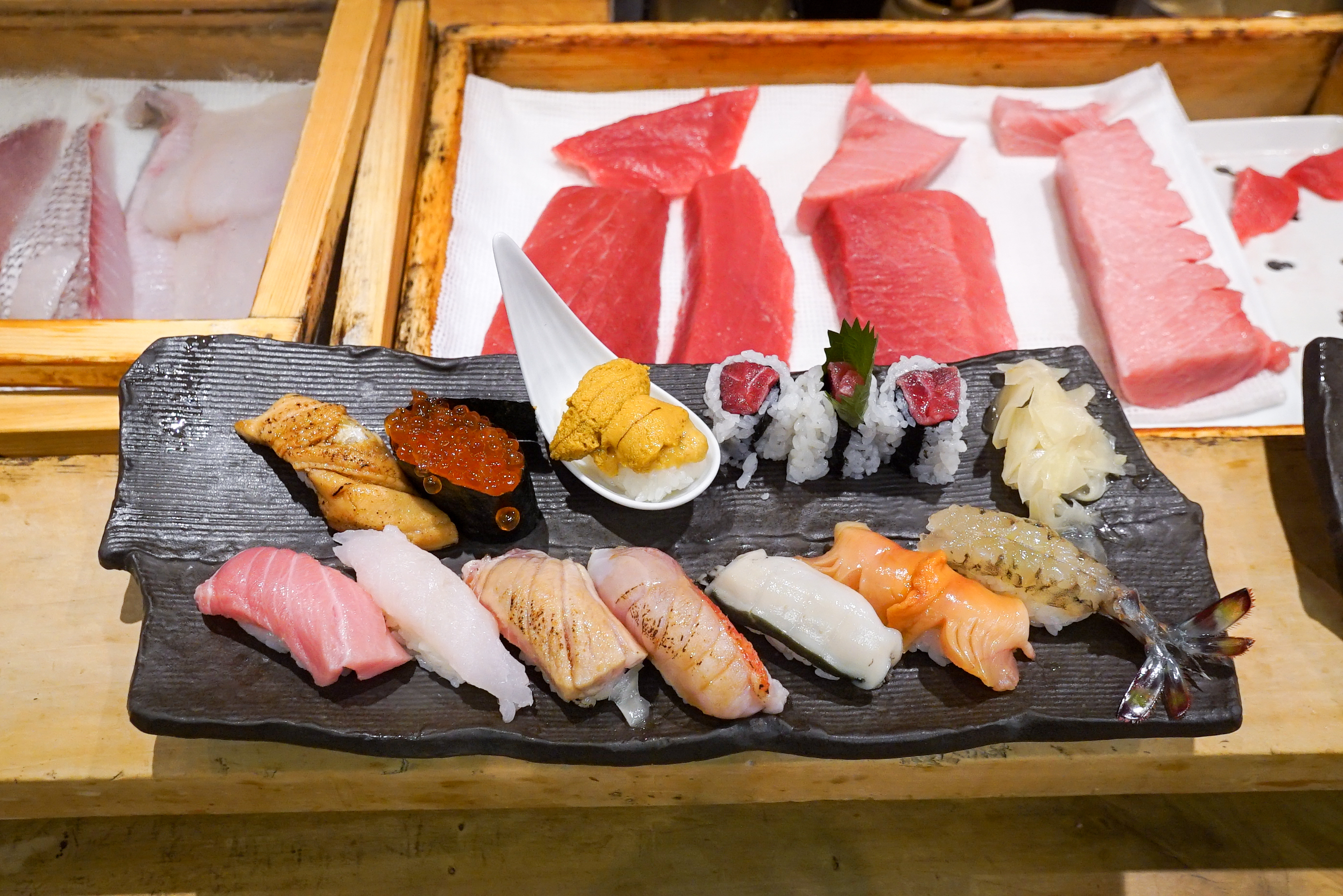 If you don’t have time to travel around for your sushi, spend a morning at Tsukiji Market in Tokyo. It’s the premier fish market in the world and the Outer Market vendors all have top quality fish caught the day before. The platter above comes from Sushi Itadori Bekkan.