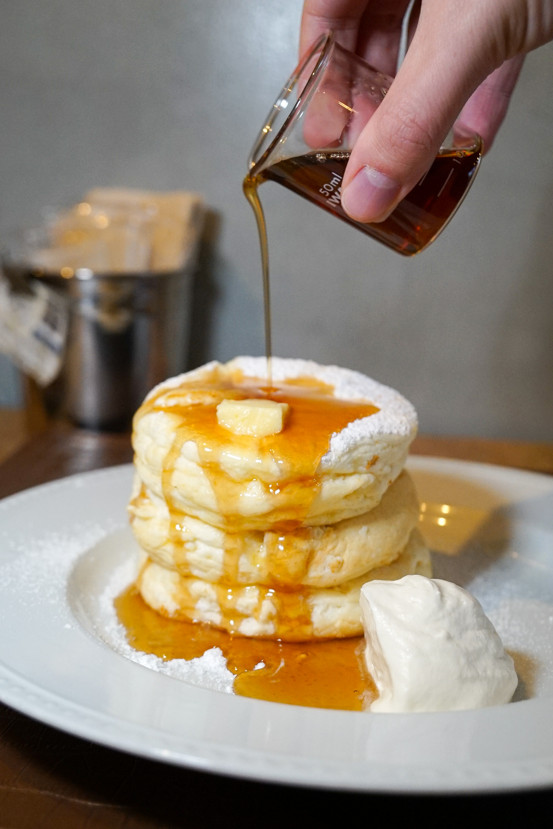 That’s right, pancakes. With Ricotta Cheese. Nothing Japanese about them except where they’re made. But they are the fluffiest most delicious pancakes you’ll ever eat. Trust me.