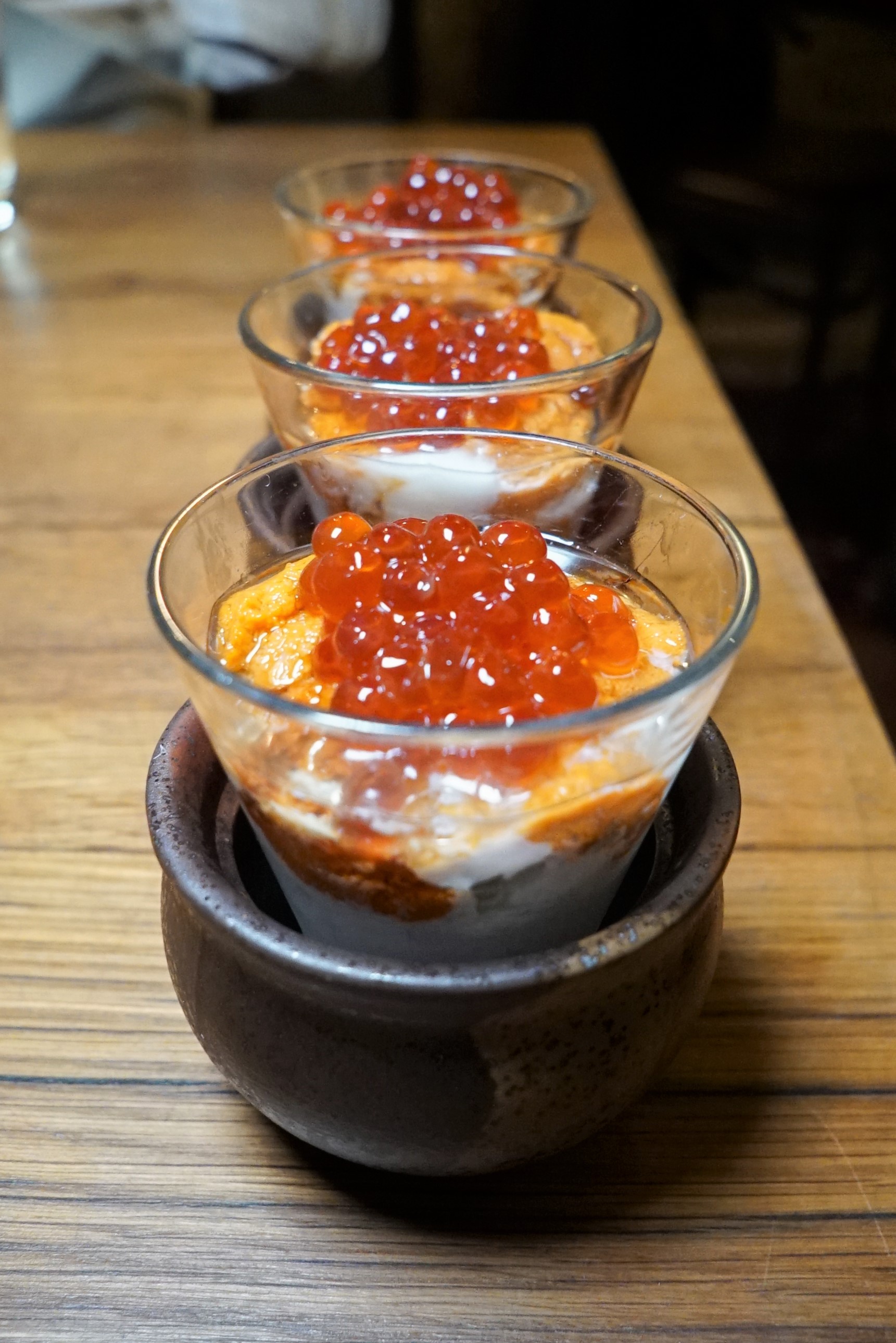 Bafun Uni Shooter I couldn’t try this with the poached egg on bottom due to my egg allergy, but damn was that uni and roe in their “special soy sauce” tasty.