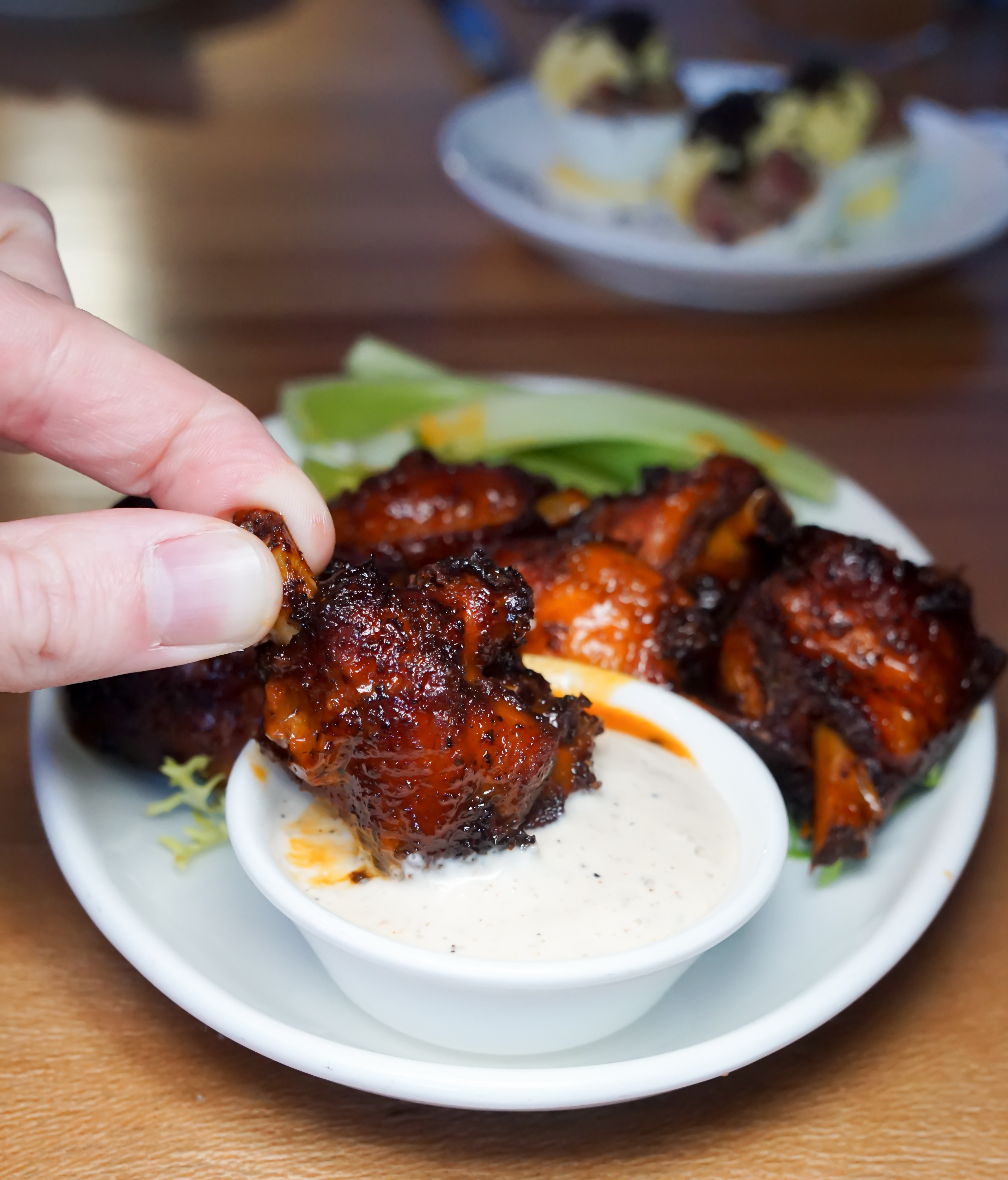 BBQ Chicken Lollipops with Hatch Vinegar & Alabama White Sauce @ Pig Bleecker Pig Bleecker does a lot of amazing things with animals that are worthy of this menu. But the perfect fry, tangy vinegar and spice blend with Chef Matt Adoos white sauce make these something special. Consider chicken lollipops the new wings.