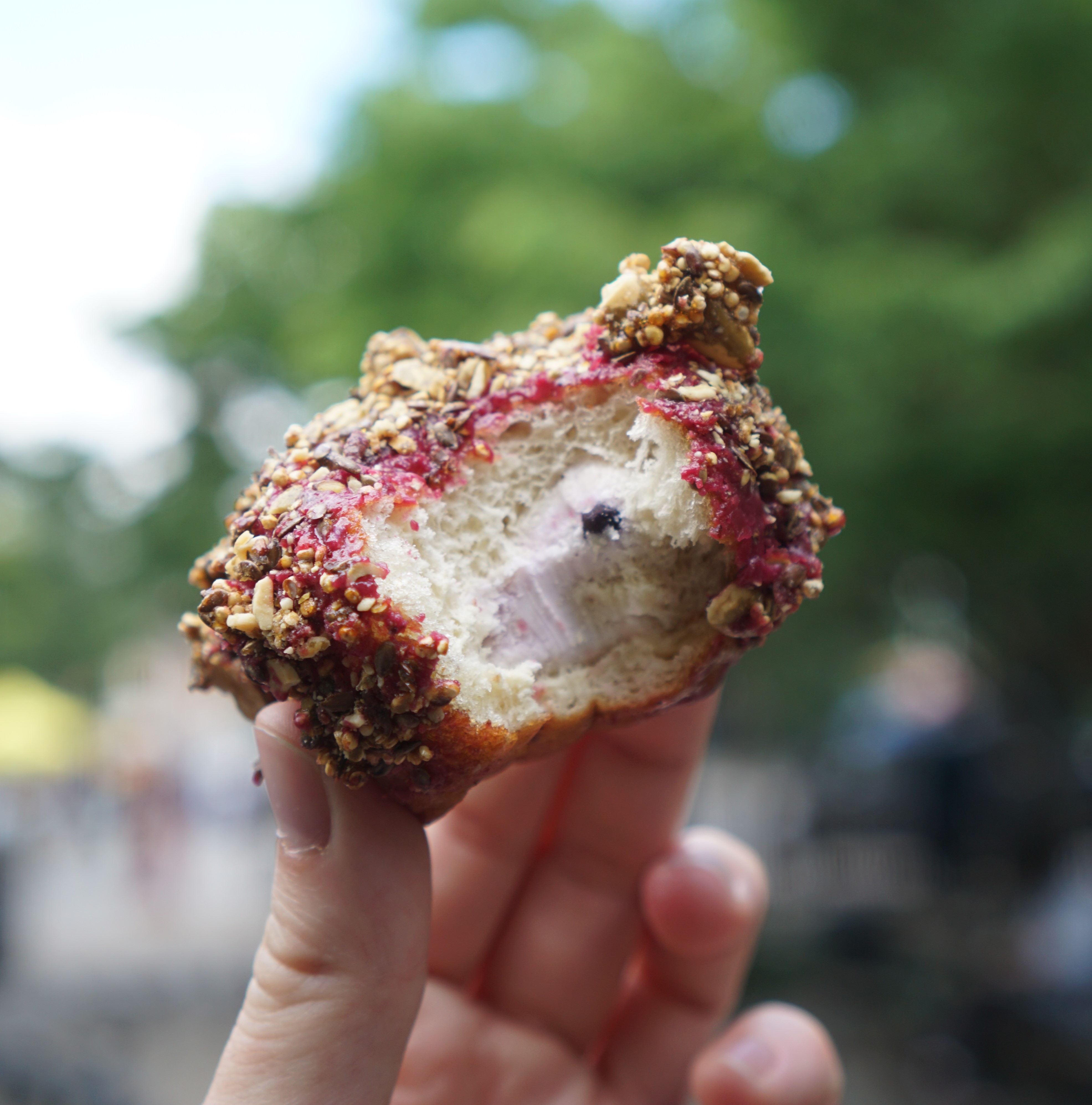 Blueberry Beet Frozen Doughnut @ Doughnut Project I’m not a huge sweets guy so one course of dessert will suffice. While a lot of doughnut ice cream sandwiches landed on the scene this year, Doughnut Project did it differently. The doughnut is filled with greek yogurt and the entire thing is frozen. Maybe it’s even a little healthy, which is probably a good thing after the rest of this meal.