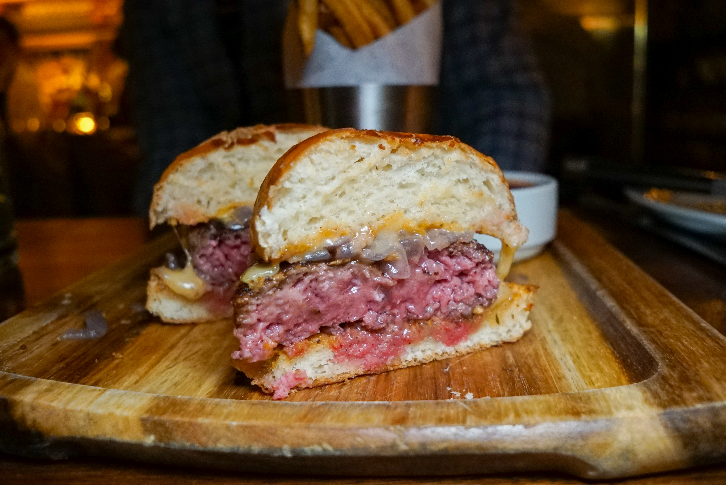 Cheeseburger @ Bowery Meat Co Move over Black Label Burger, this dry aged blend of Bowery Meat Co. now gets my vote for best tasting patty in the city. The rest is relatively simple – Griddled Onions, Raclette, Tomato Aioli, – but that’s all beef like that needs. Another winner from multi-time Burger Bash champion Chef Capon (of B&B Winepub, where this burger is also available).