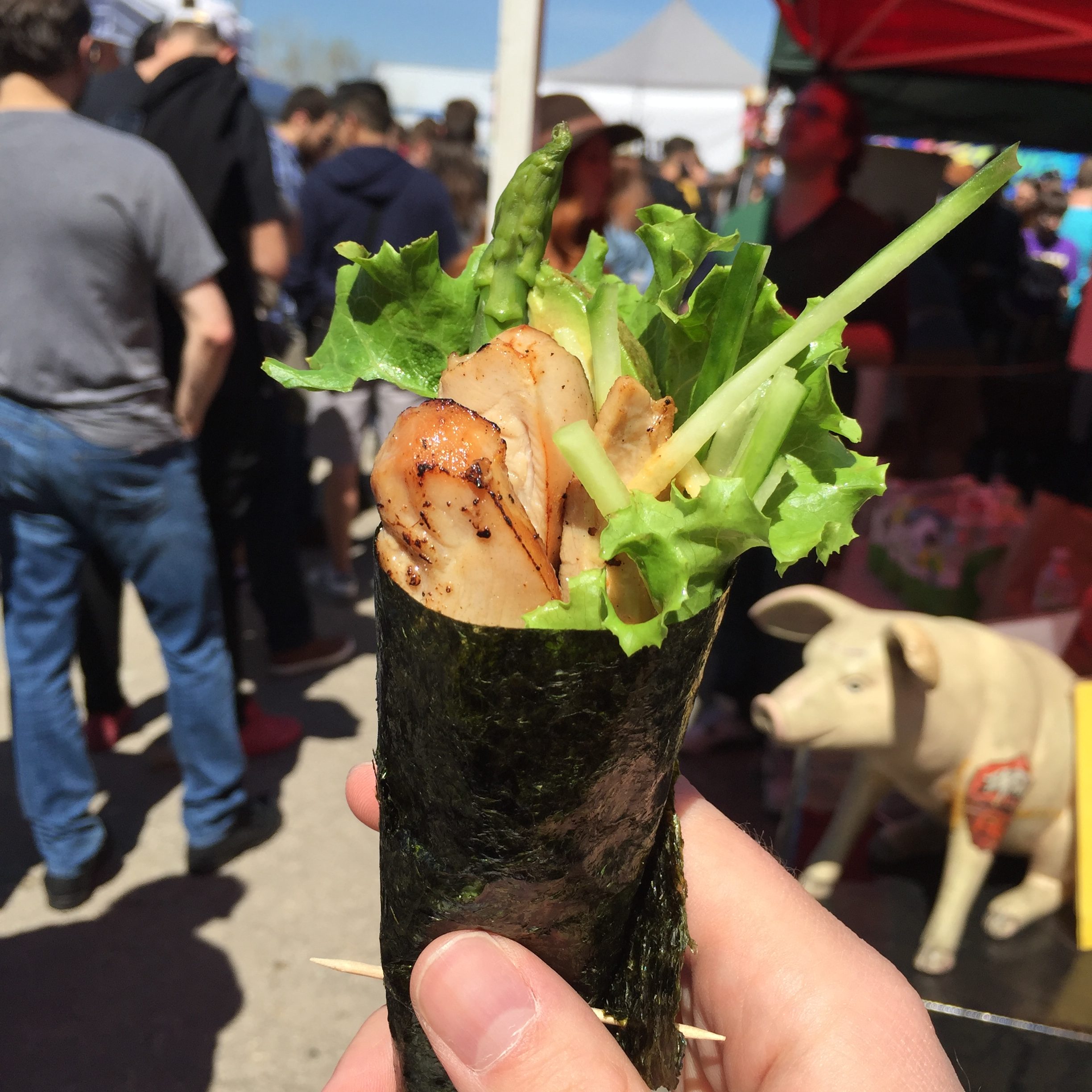 Kung Pao Pork Belly Sandwich @ Strange Flavor This might be my favorite new vendor simply because it’s such a genius combo: Sichuan Food & Sandwiches. So far I’ve only had this Kung Pao Pork Belly but you can see from the size of that pig they’re not messing around. Definitely in my top 5 vendors.
