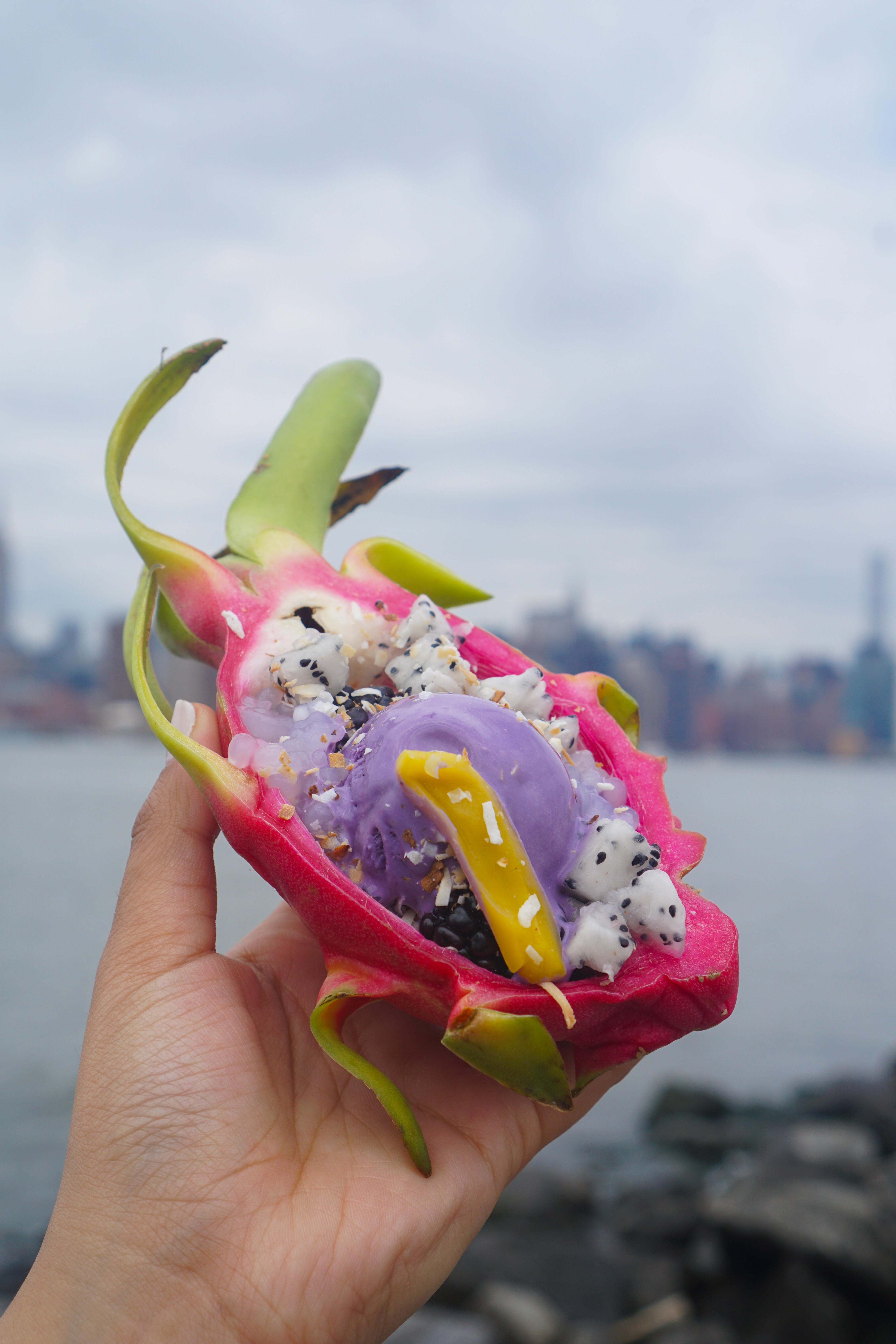 Halo Halo in Dragon Bowl @ Ube Kitchen Ube ice cream served in a dragonfruit with the fruit and fresh & toasted coconut. It’s as tropical and refreshing as it sounds.