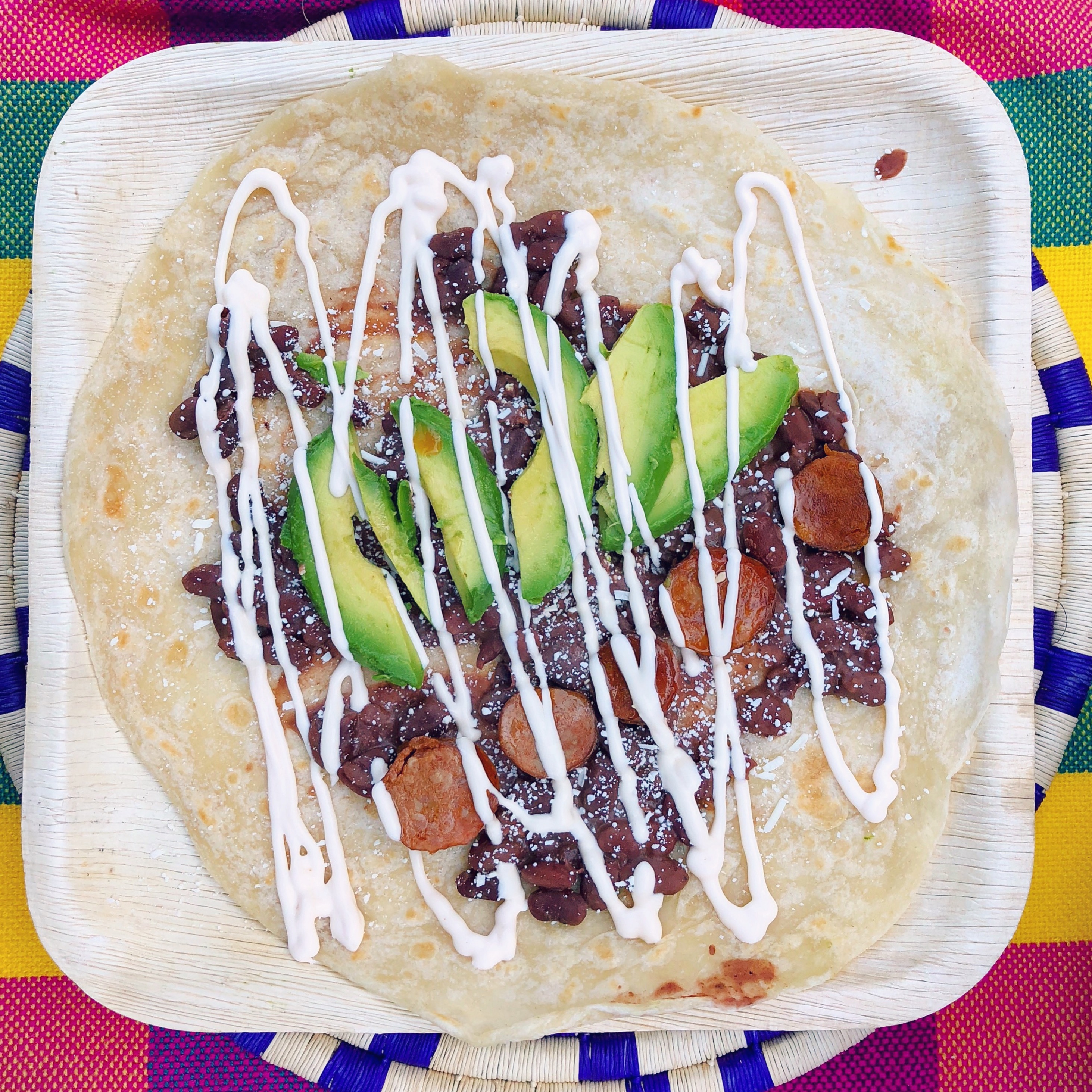 Baleada @ 504 HN Market I first sampled a Baleada while visiting Honduras in 2012 and for six long years I waited for this Honduran snack to make its way to NYC. Finally it’s in my backyard of Williamsburg. A semi-thick tortilla is topped with refried beans, avocado, cheese, crema and optional egg or chorizo. Try it and thank me later.